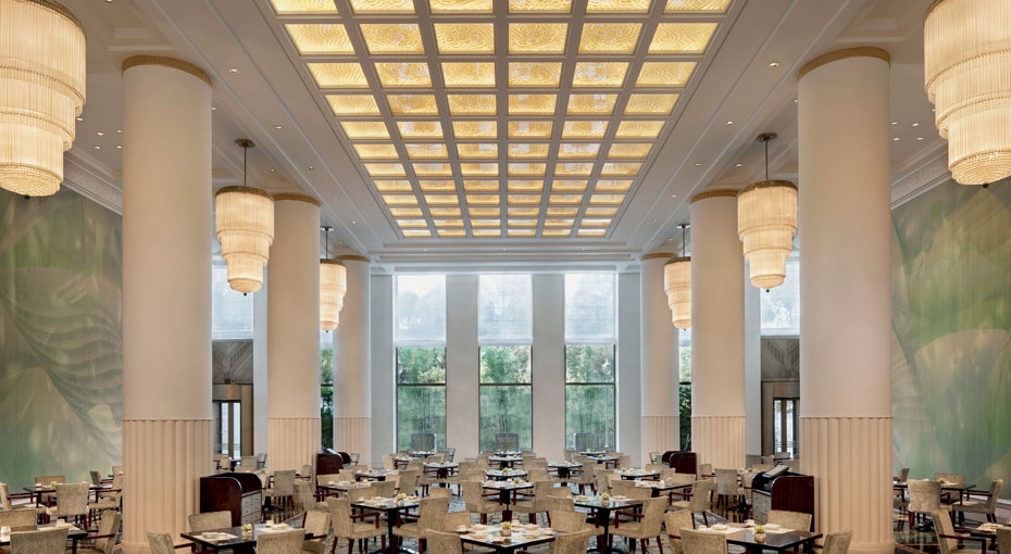 大堂茶座是每一家半岛酒店的灵魂,踏进上海半岛酒店3 层高楼底的大堂茶座,上个世纪20 年代商贾华宅气派扑面而来,出自香港艺术家Helen Poon 手笔的两幅巨型立体壁画气派慑人。大堂茶座全日美食供应不断,大堂弦乐队于下午2 点至6 点于演奏阳台现场演奏,而大堂爵士乐队由黄昏起倾力演出。下午茶则依然是大堂茶座最经典也是最受客人追捧的项目,即使等待多时,也依然有客人愿意守候。