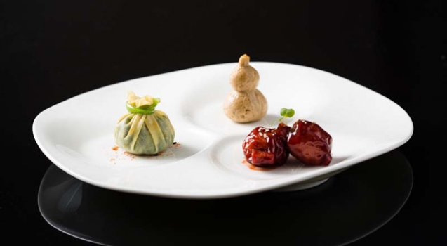 新开业的素食餐厅福和慧隐匿于闹中取静的愚园路。餐厅是福系列餐厅老板全新打造之作。首次涉猎餐厅设计的吕永中以木、布、石为设计灵感。主厨以自己对于素食的认识,加上对于中西餐烹饪手法的不断尝试,“摸索”着自己的第一份素食菜单。每道菜以食材来命名,直白之余也给予食客充分的想象空间。