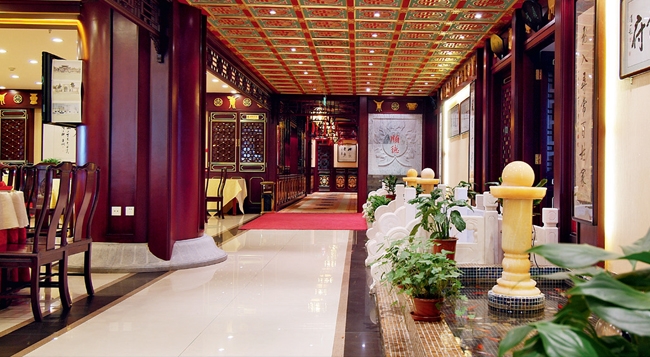 点缀在餐厅廊柱间的老北京风情水粉画,和弥足珍贵的京城老照片都为餐厅增添了很多都城气质。